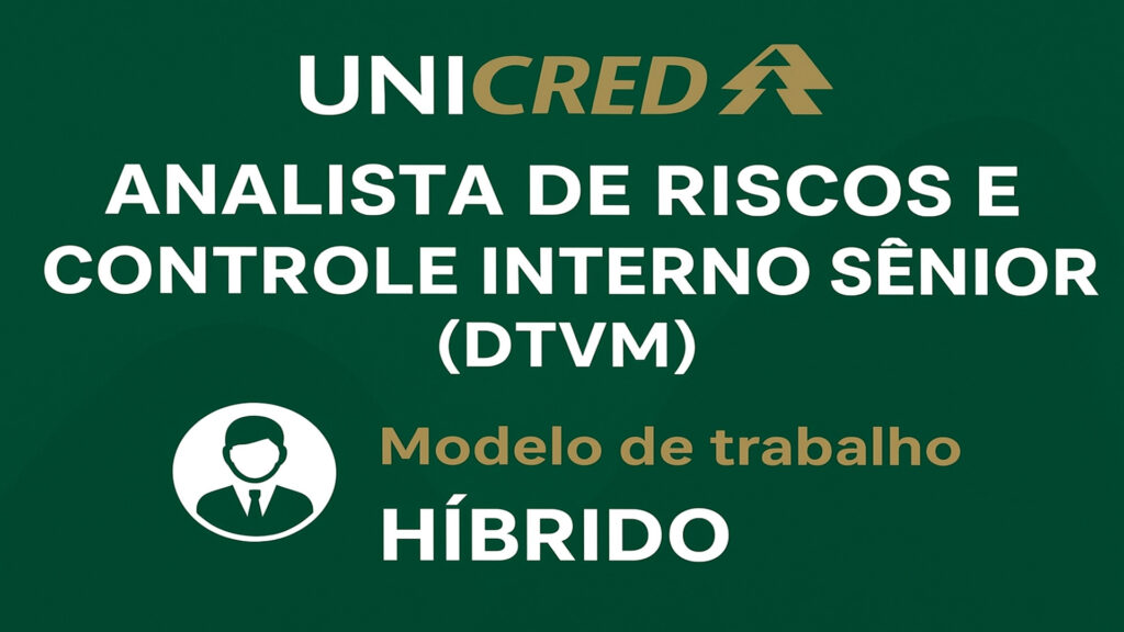 Unicred, vaga Unicred, analista de riscos, controle interno, vaga híbrida, trabalho híbrido, emprego Unicred, DTVM, finanças, governança corporativa, vaga sênior, carreira financeira, vagas banco, Unicred Brasil, analista sênior, vaga em São Paulo, vaga em Porto Alegre, oportunidades Unicred, gestão de riscos, mercado financeiro