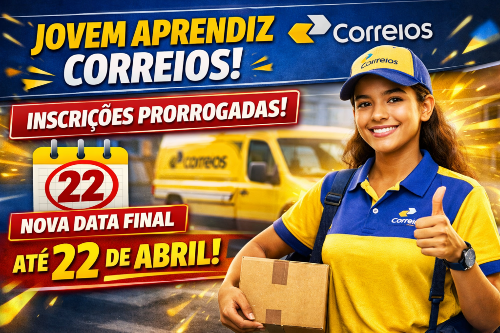 Se você está em busca do primeiro emprego, essa é uma oportunidade imperdível! O programa Jovem Aprendiz dos Correios teve suas inscrições prorrogadas até o dia 22 de abril de 2026, dando uma nova chance para quem ainda não se inscreveu.