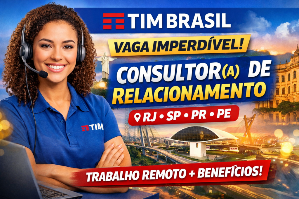 A TIM Brasil, uma das principais operadoras de telecomunicações do país, está com processo seletivo aberto para Consultor(a) de Relacionamento voltado às regiões Rio de Janeiro, São Paulo, Paraná e Pernambuco. A vaga é remota, oferecendo flexibilidade e a possibilidade de atuar de casa enquanto garante um atendimento de qualidade aos clientes.