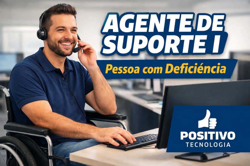 A vaga é destinada a Agente de Suporte I e faz parte das oportunidades afirmativas para pessoas com deficiência, o que demonstra o compromisso da Positivo com a inclusão e diversidade.