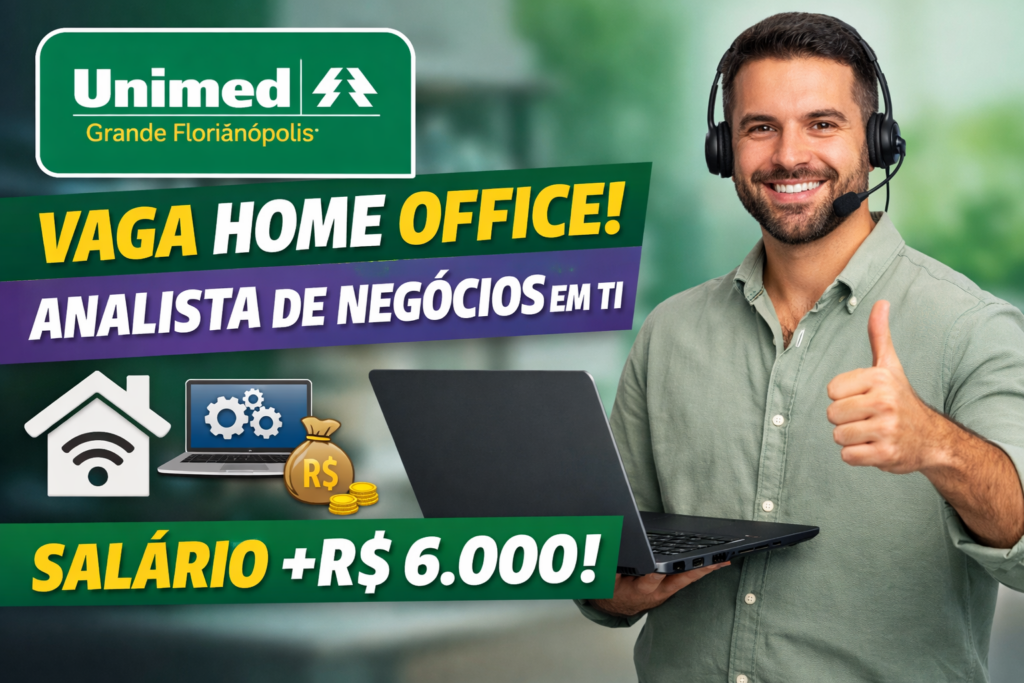 A Unimed Grande Florianópolis, considerada a maior cooperativa de saúde de Santa Catarina, está com oportunidade aberta para o cargo de Analista de Negócios em TI, oferecendo modelo de trabalho em teletrabalho (home office) e salário atrativo superior a R$6 mil.