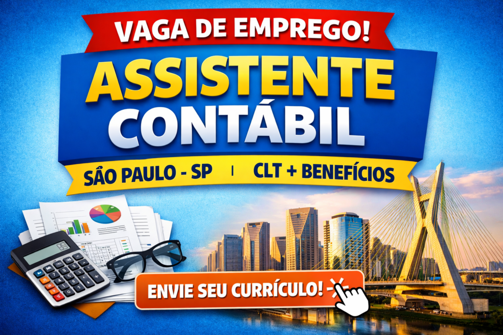 Se você está em busca de uma nova oportunidade na área contábil, essa pode ser a chance ideal para dar o próximo passo na sua carreira! Uma empresa localizada em São Paulo – SP está com vaga aberta para Assistente Contábil, oferecendo contratação CLT, benefícios atrativos e possibilidade real de crescimento profissional.