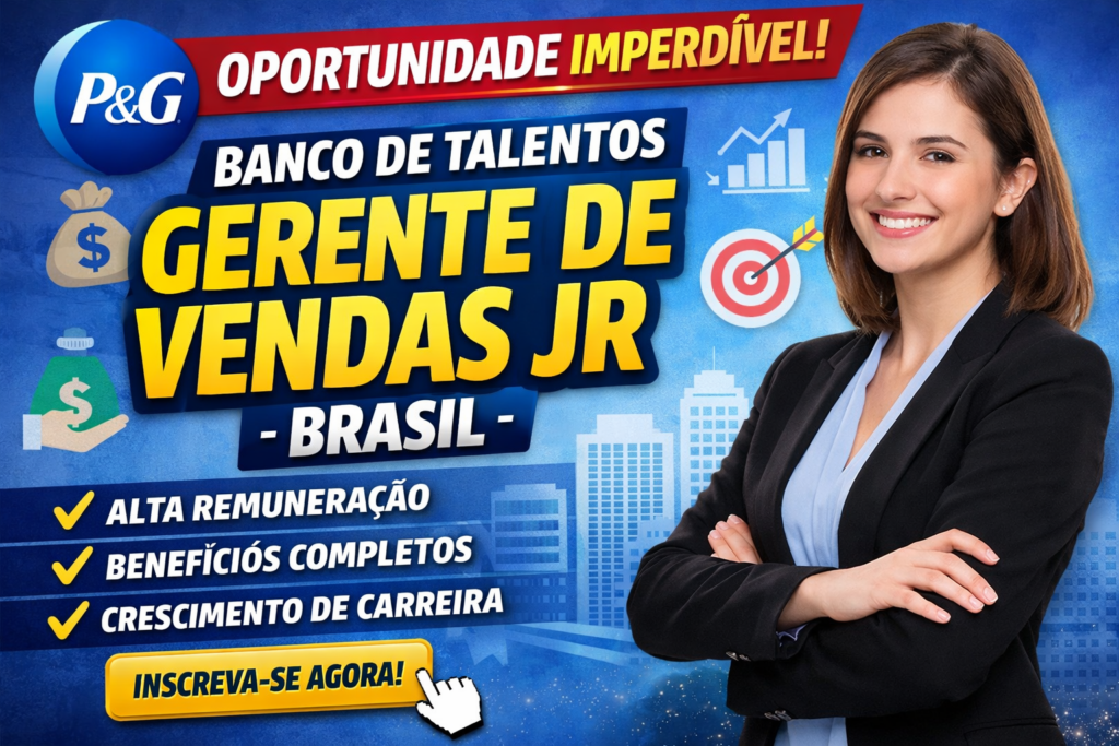 A P&G (Procter & Gamble), uma das maiores multinacionais do mundo no setor de bens de consumo, está com inscrições abertas para seu Banco de Talentos na posição de Gerente de Vendas Jr, oferecendo uma excelente oportunidade para profissionais que desejam acelerar sua carreira em um ambiente corporativo inovador, dinâmico e altamente estratégico.